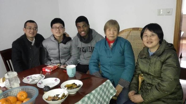 我接待的第一位同学,来自赞比亚。他兴趣非常广泛,尤其在音乐方面。我们回家那会儿,正逢上我的父亲开始学习吹埙,印象最深的是父亲为了展示中国文化,在他面前吹了一首中国古典乐曲,而他竟拿着吉他在从来没有听过那首歌的情况下为父亲伴奏。
