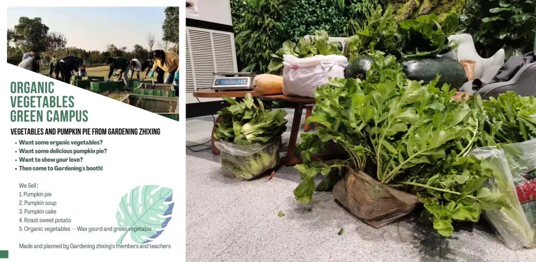 园艺社慈善拍卖会海报和义卖的蔬菜